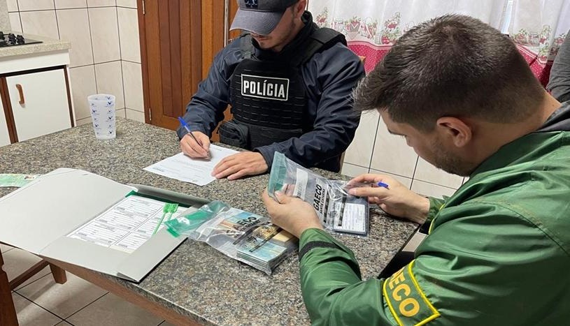 Com os investigados, a polícia apreendeu três aparelhos celulares, um notebook e R$ 14 mil em dinheiro vivo. Os suspeitos foram encaminhados à Polícia Civil para dar continuidade à investigação.