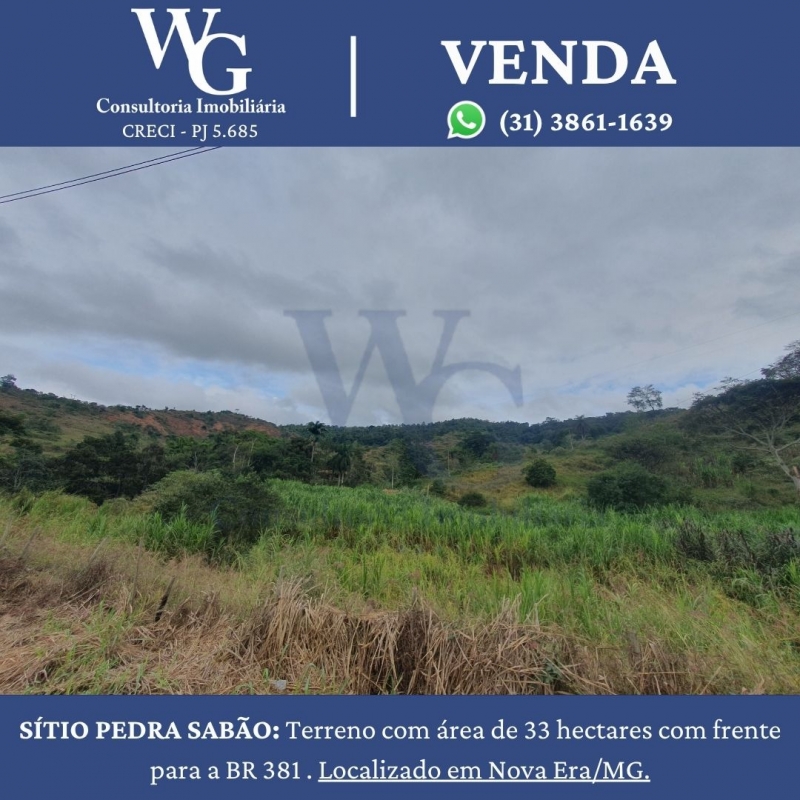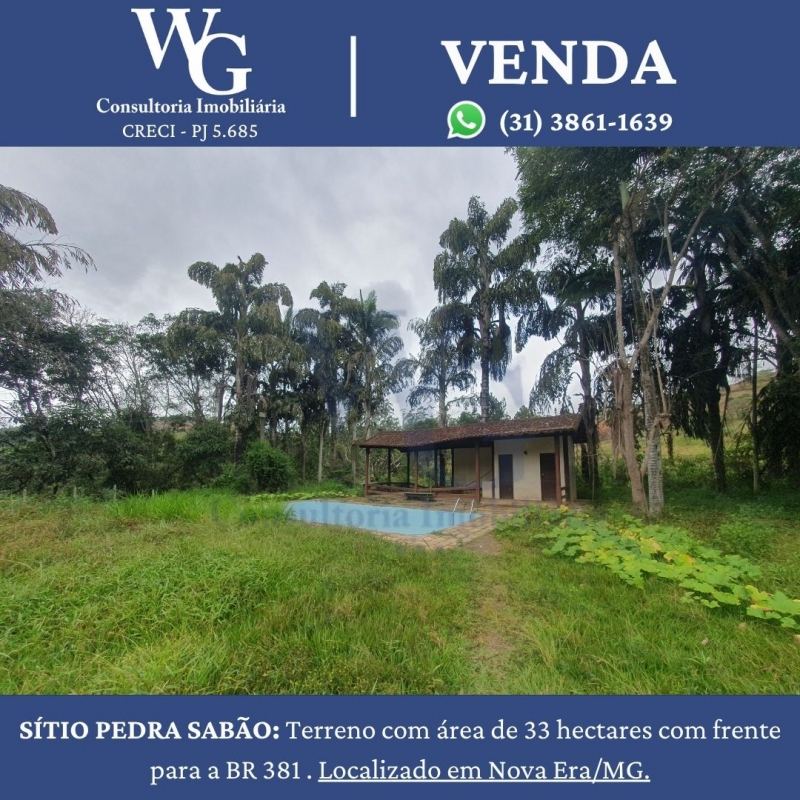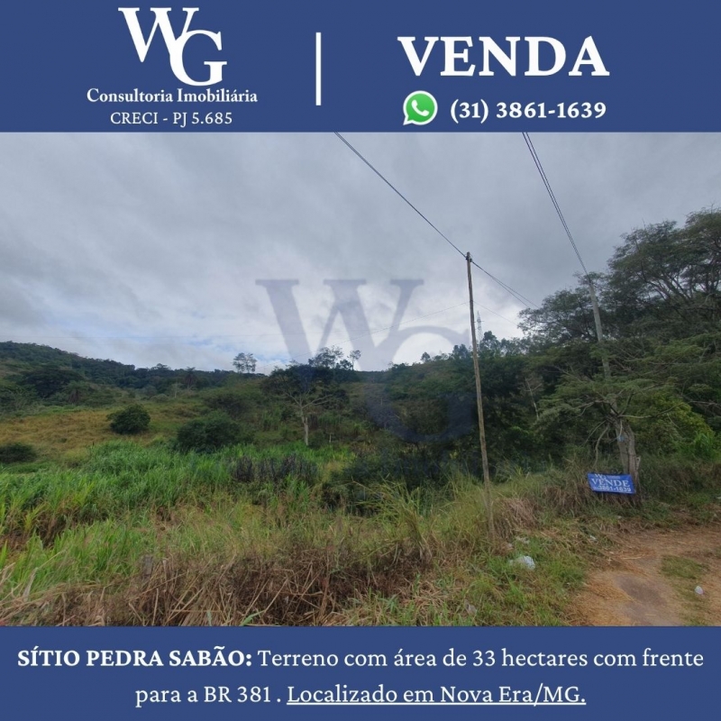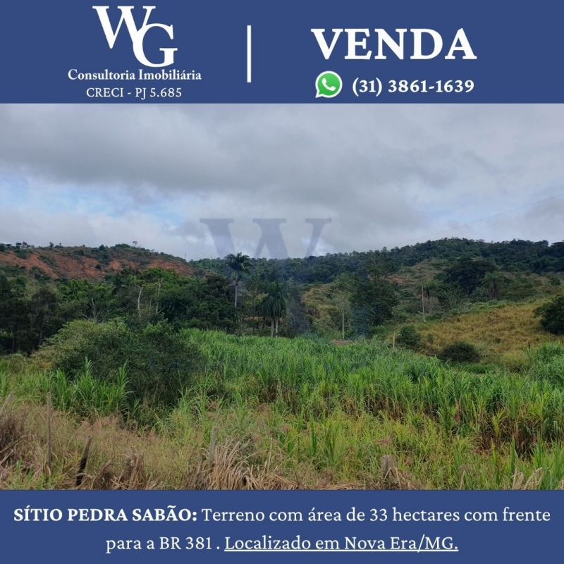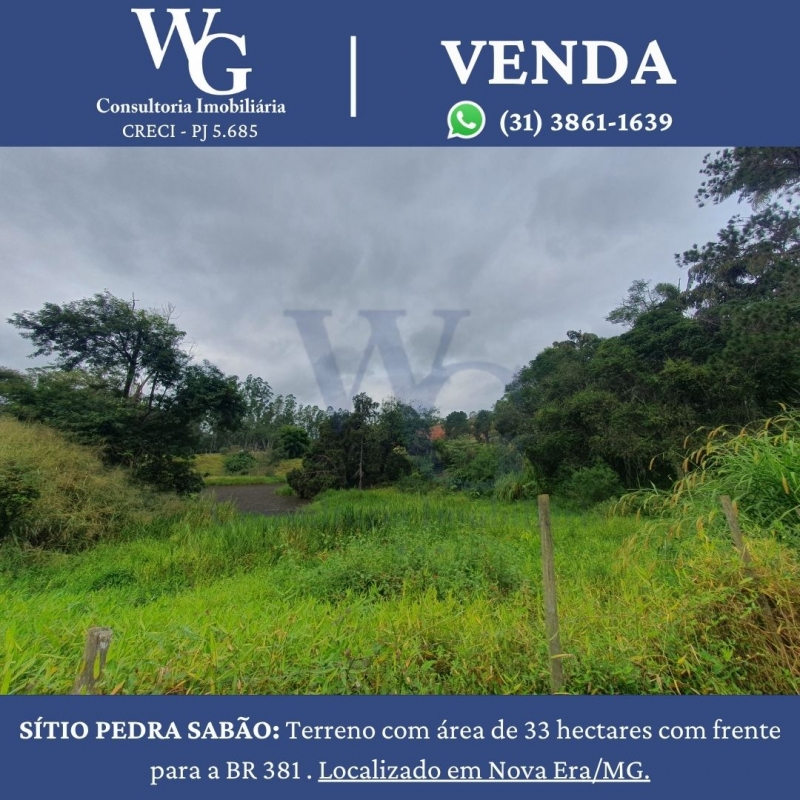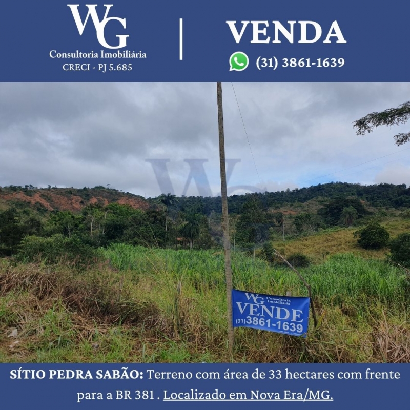 SÍTIO PEDRA SABÃO: Terreno com área de 33 hectares com frente para a BR 381 . Localizado em Nova Era/MG.