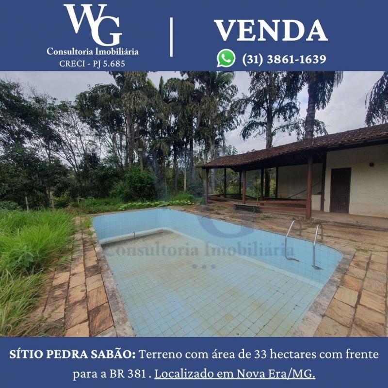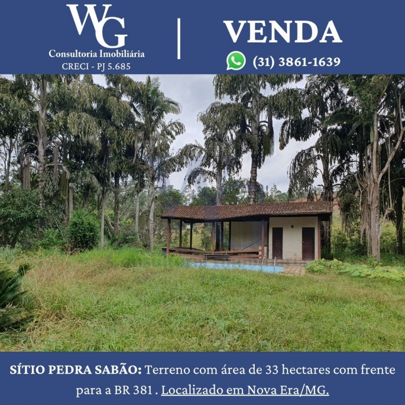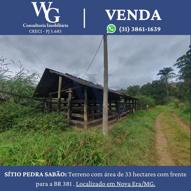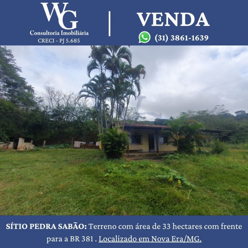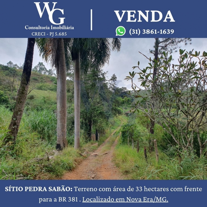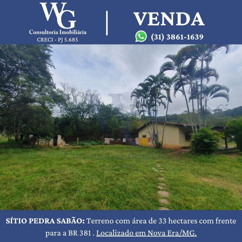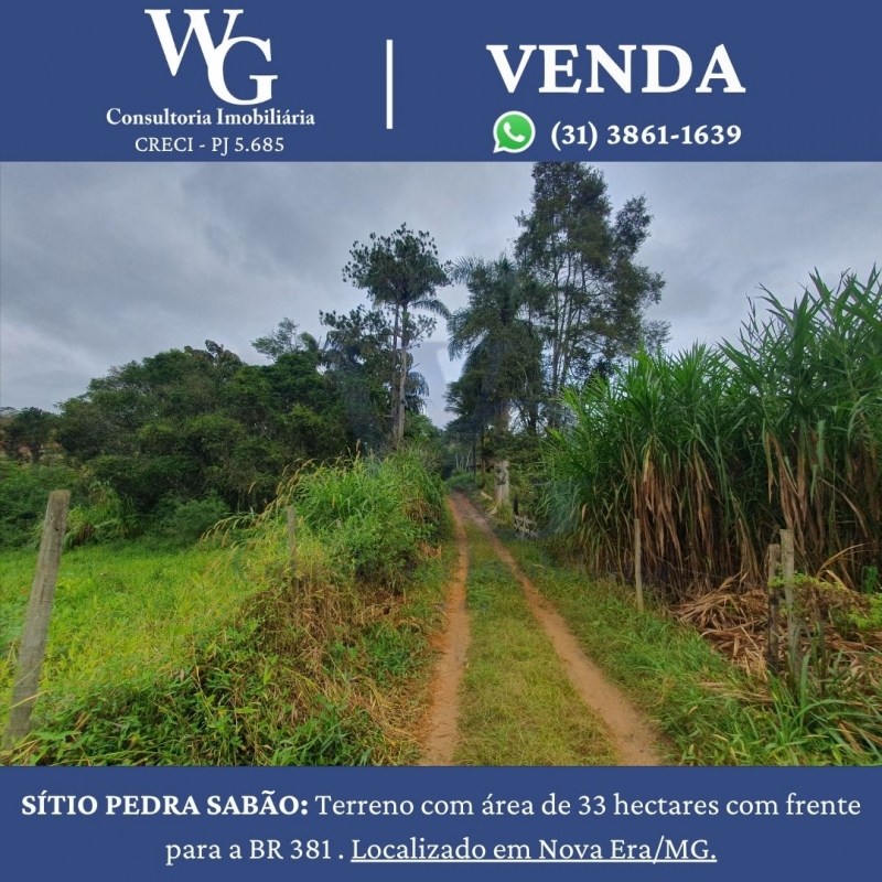 SÍTIO PEDRA SABÃO: Terreno com área de 33 hectares com frente para a BR 381 . Localizado em Nova Era/MG.