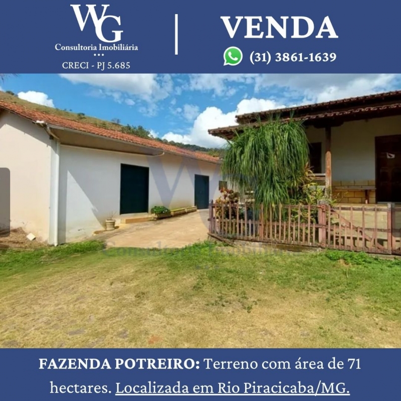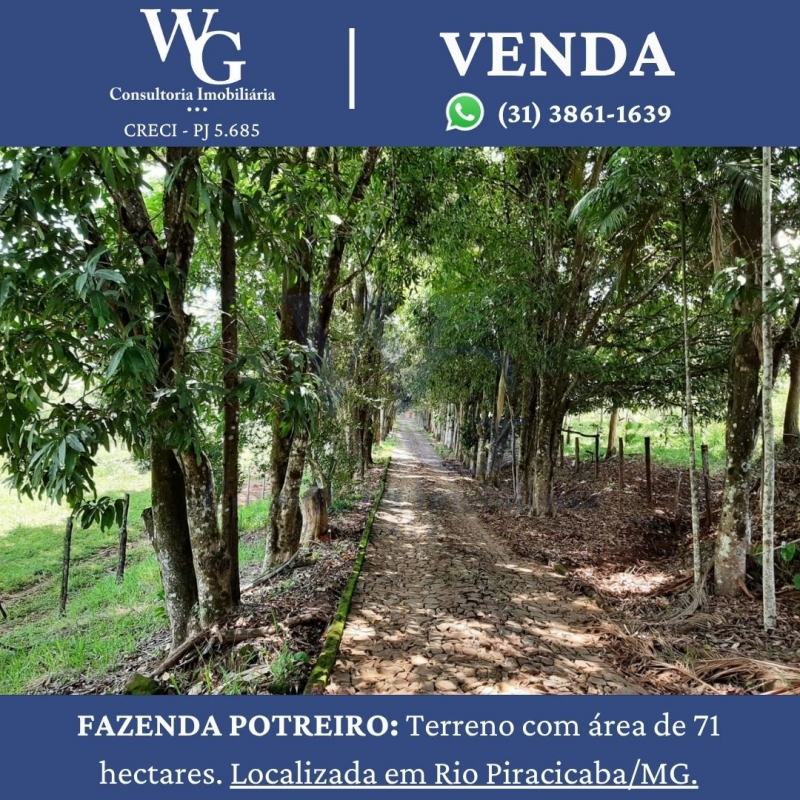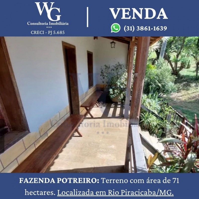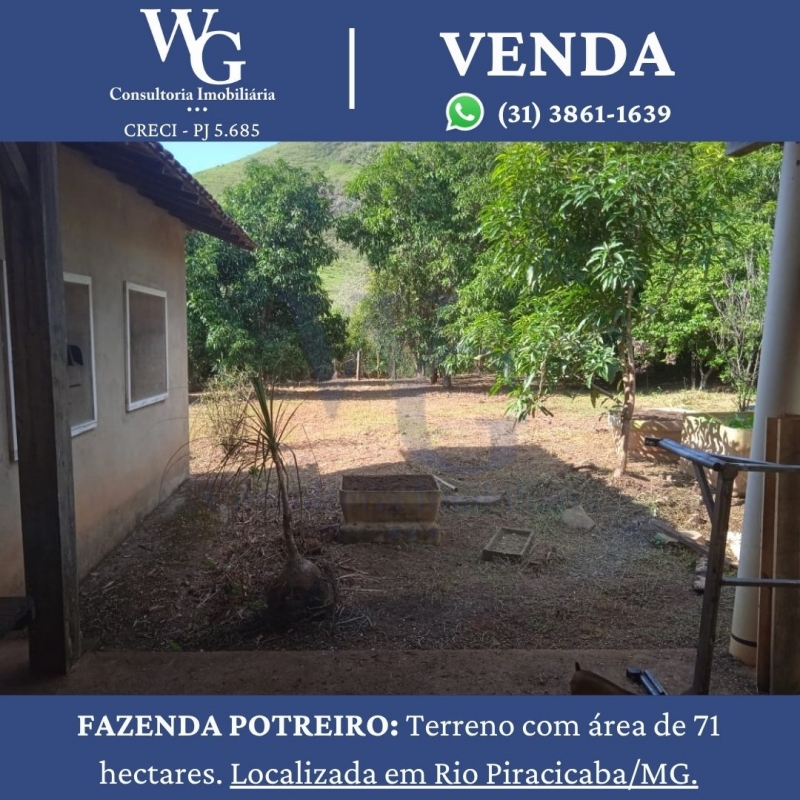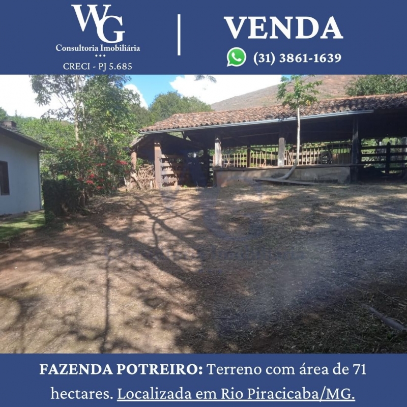 Fazenda Potreiro. Localizada próxima ao Bairro de Fátima, na entrada de Rio Piracicaba/MG.