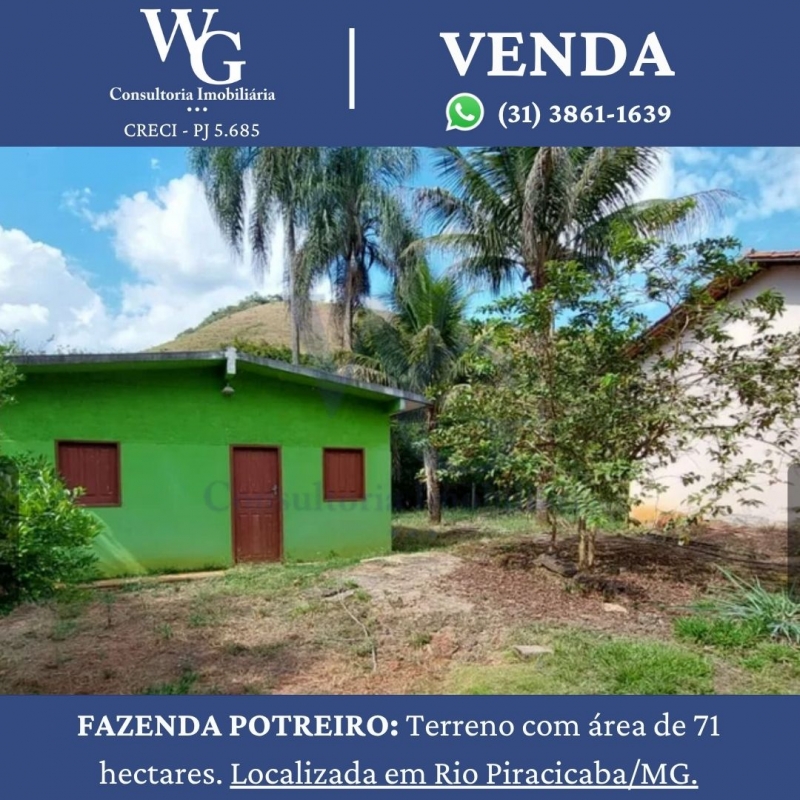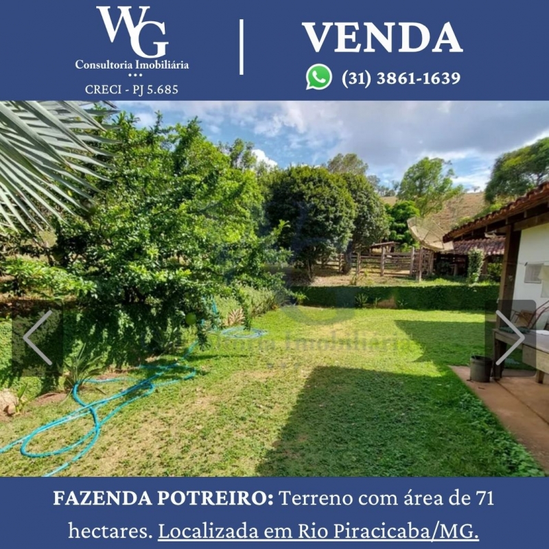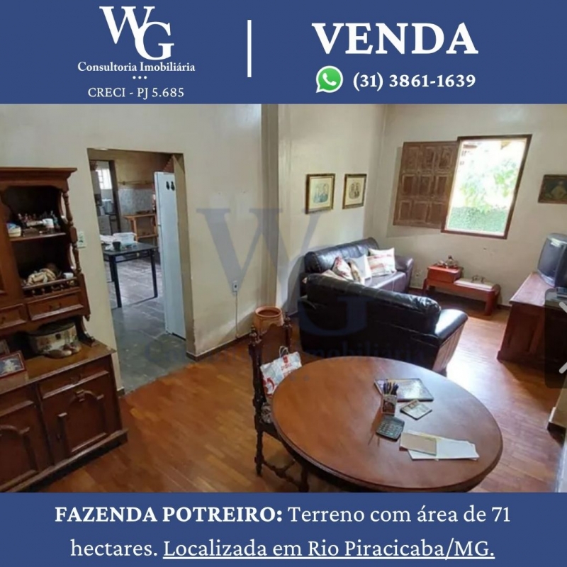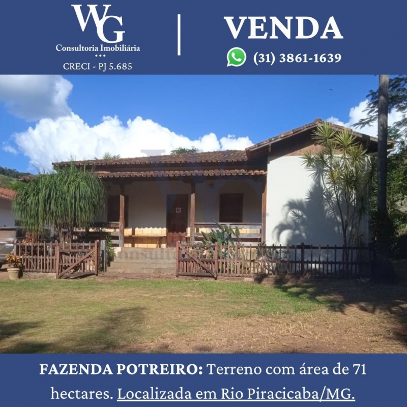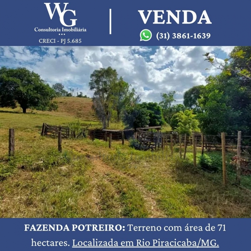 Fazenda Potreiro. Localizada próxima ao Bairro de Fátima, na entrada de Rio Piracicaba/MG.