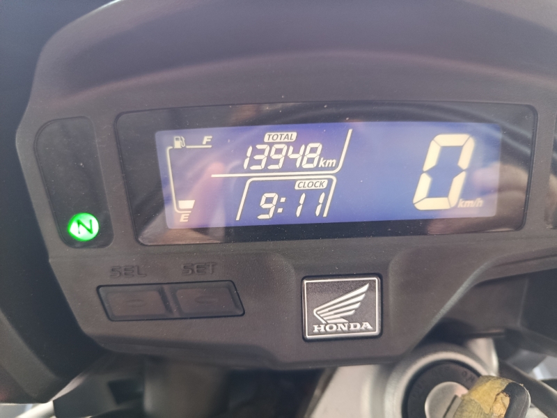 Moto completa, partida elétrica e freios a disco nas 2 rodas.