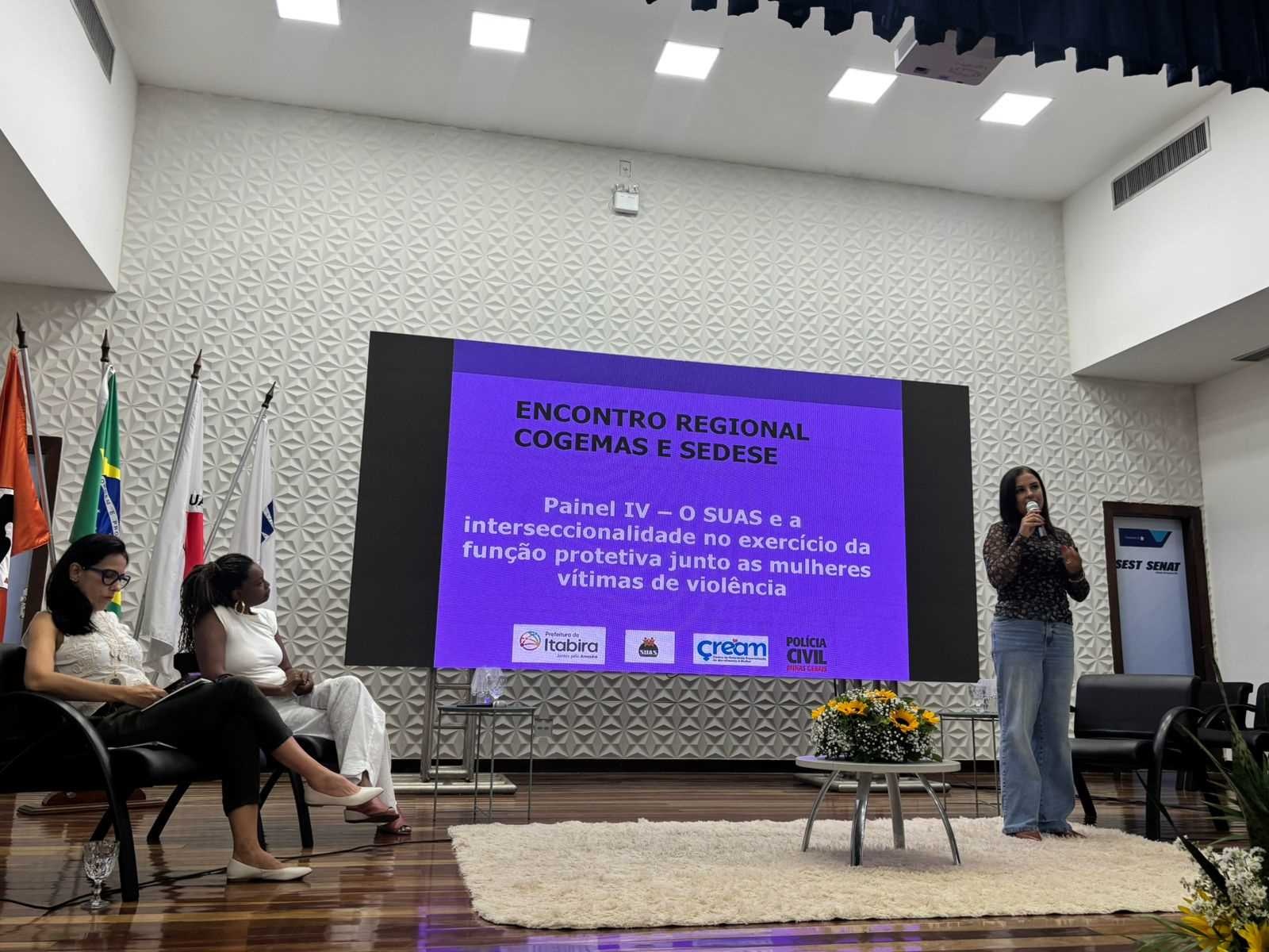 A atuação integrada entre o Centro de Referência Especializado de Atendimento à Mulher (CREAM) e a Delegacia Especializada de Atendimento à Mulher (DEAM) de Itabira foi destaque nos dias 23 e 24 de abril, durante o Encontro Regional do COGEMAS e da Secretaria de Estado de Desenvolvimento Social de Minas Gerais (SEDESE), realizado em Divinópolis (MG).