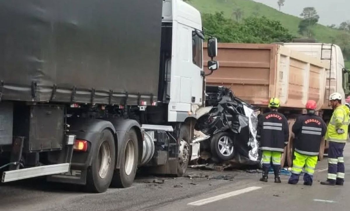 Duas pessoas morrem após carro ser prensado por carretas na Fernão Dias